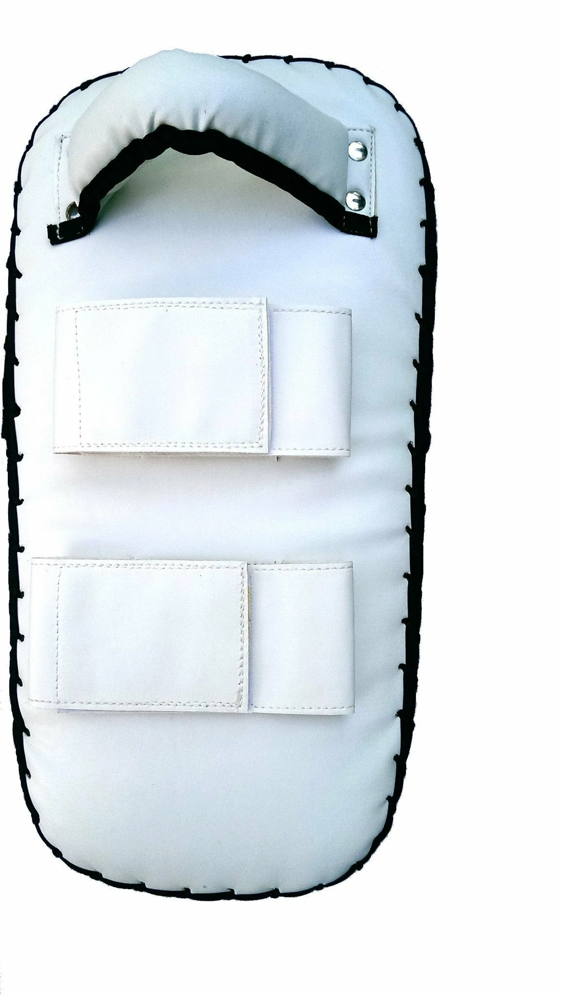 The Martial Arts Armory kick shield is made with high density foam for a durable long lasting shield. Back of the shield features Grip handle and two forearm straps. Hook and loop closure on forearm straps for a strong secure fit. Excellent for mma, muay thai, kickboxing, karate and tae kwon do training. Striking area measures 16″ long x 8″ wide x 4″ thick. Sold individually.