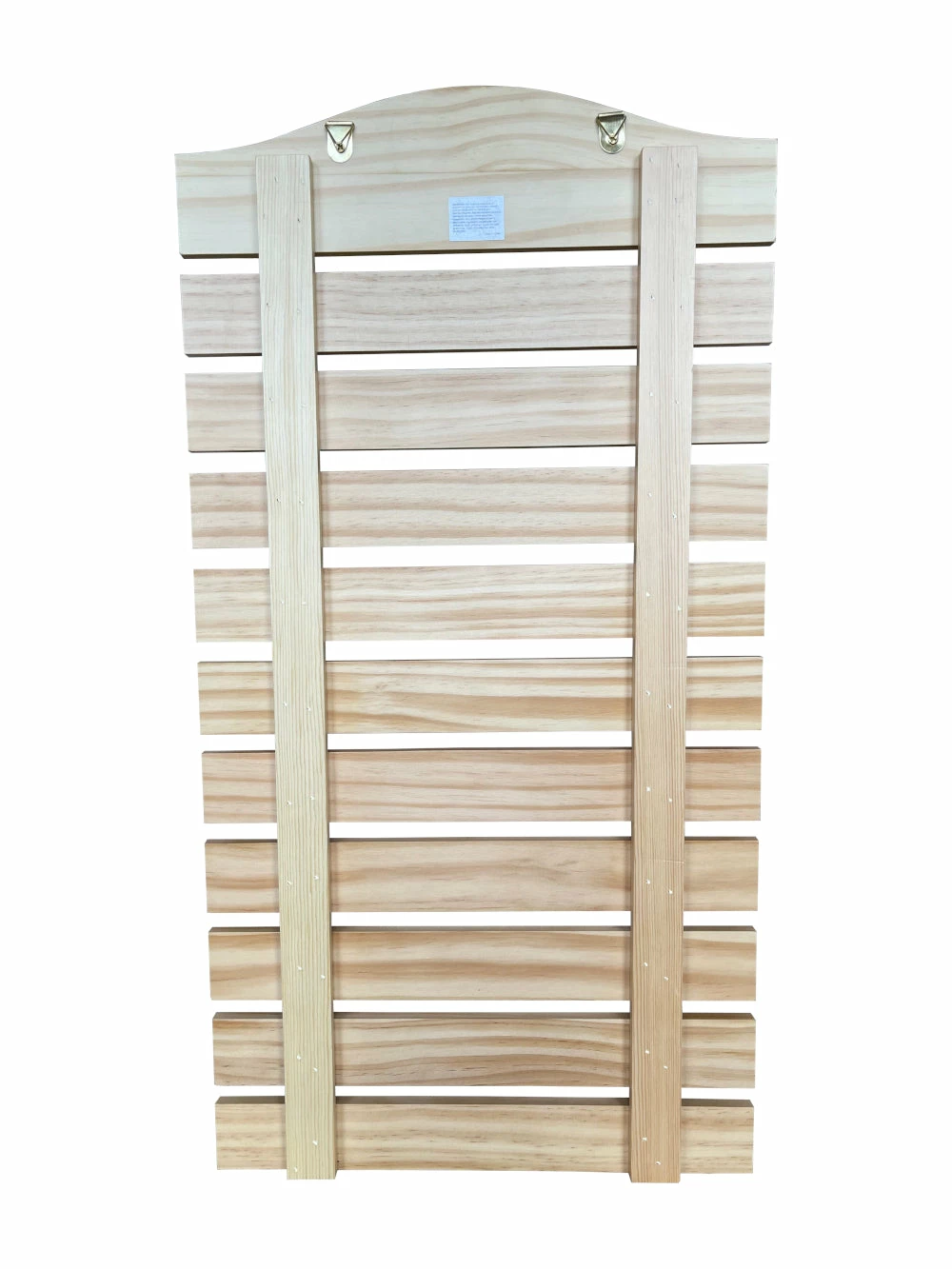 Display your karate belt achievements with pride with the Sedroc belt display. Starting with the beginning belt and reaching the highest level on top. The rack holds up to 10 belts and can be easily mounted to any wall. Included loops with snap closure holds the belts securely in place. The display is made of quality pine wood and ideal for displaying your achievements. Easily customize your display with stickers, stamps and more. Belts not included.