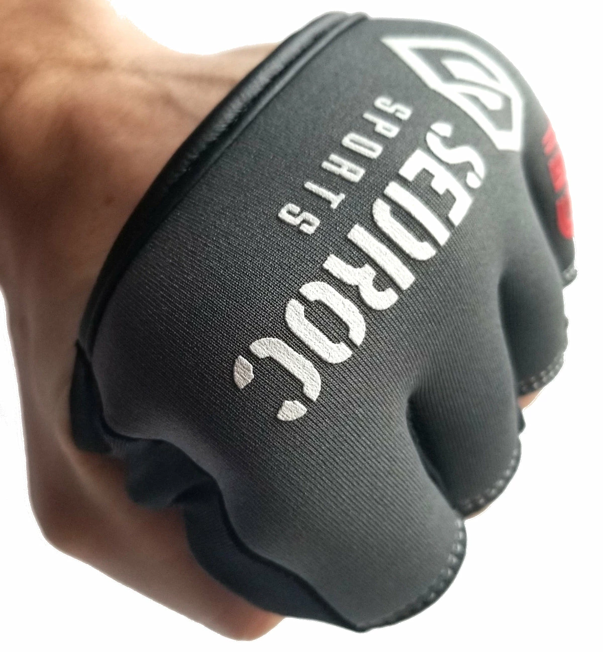 The Sedroc Sports Gel Knuckle Shields are packed with over 1/2″ of gel padding. Enforced with a flexible neoprene cover for an excellent fist guard that provides extreme protection and impact resistance. Gel padding over the fist and knuckles for amazing protection. Custom form fit guards slip on easily for a snug fit. A palm bar helps create the perfect fist. These guards can be worn alone, under boxing gloves or with hand wraps for optimal protection. Sold in pairs